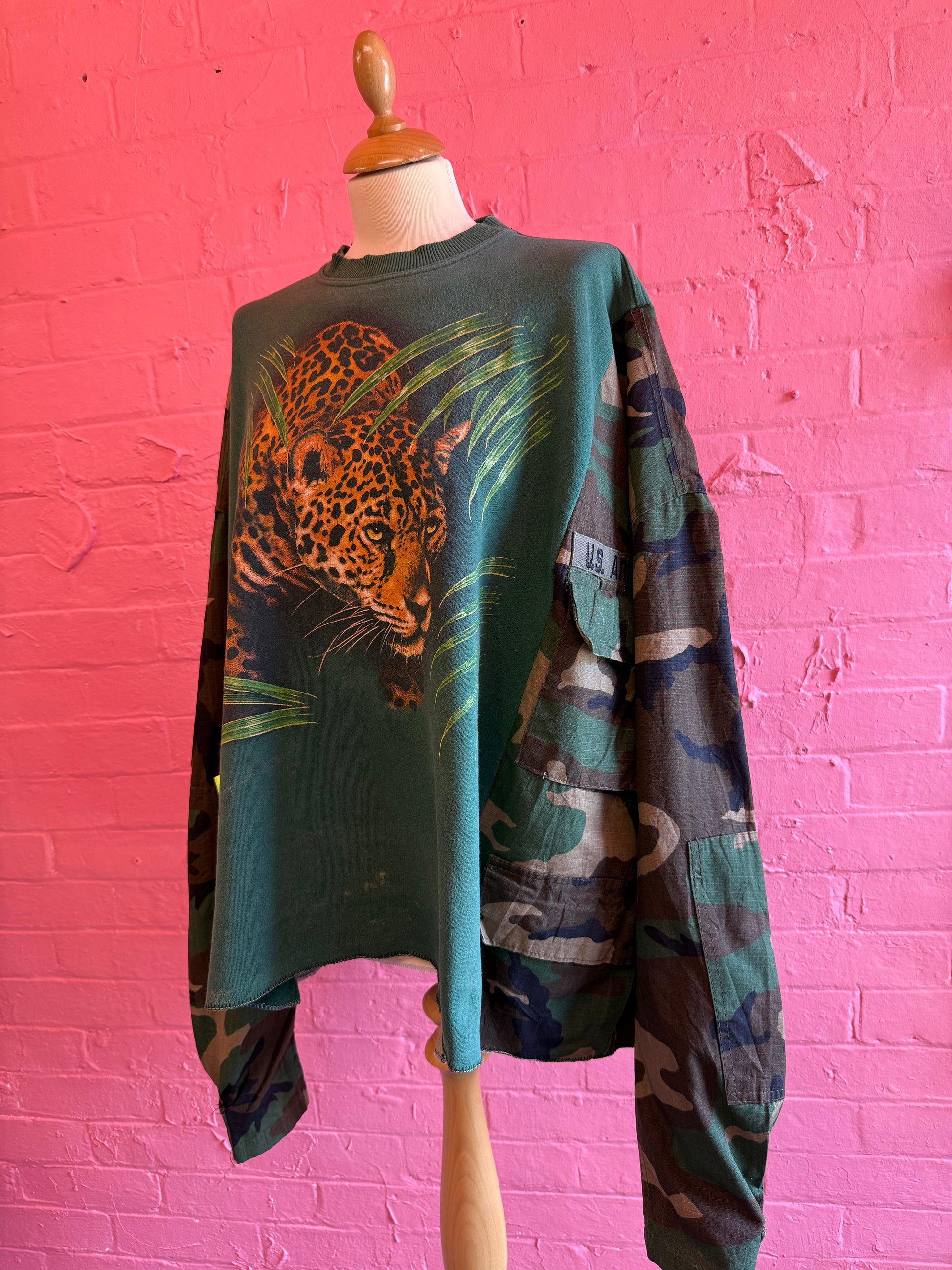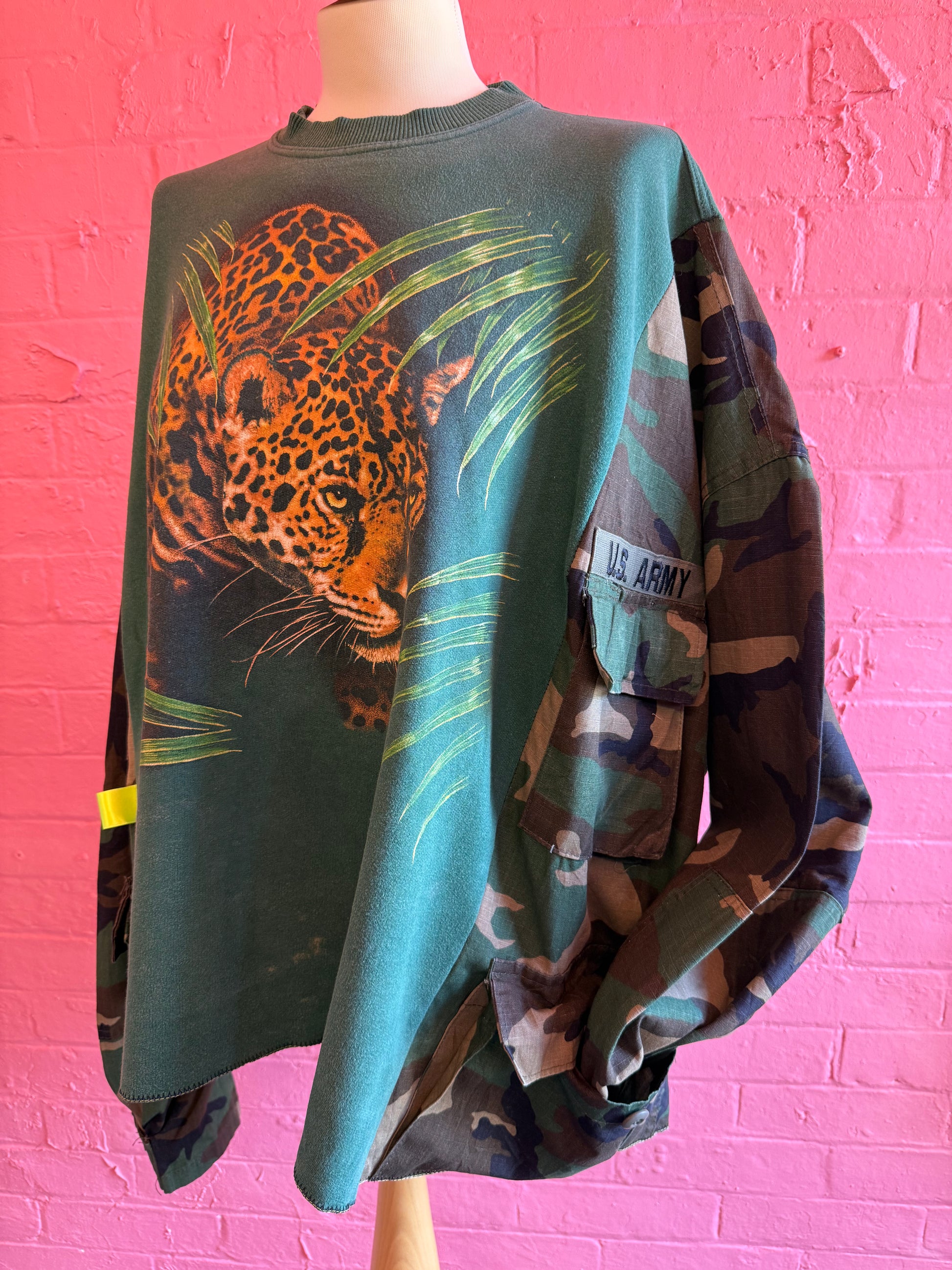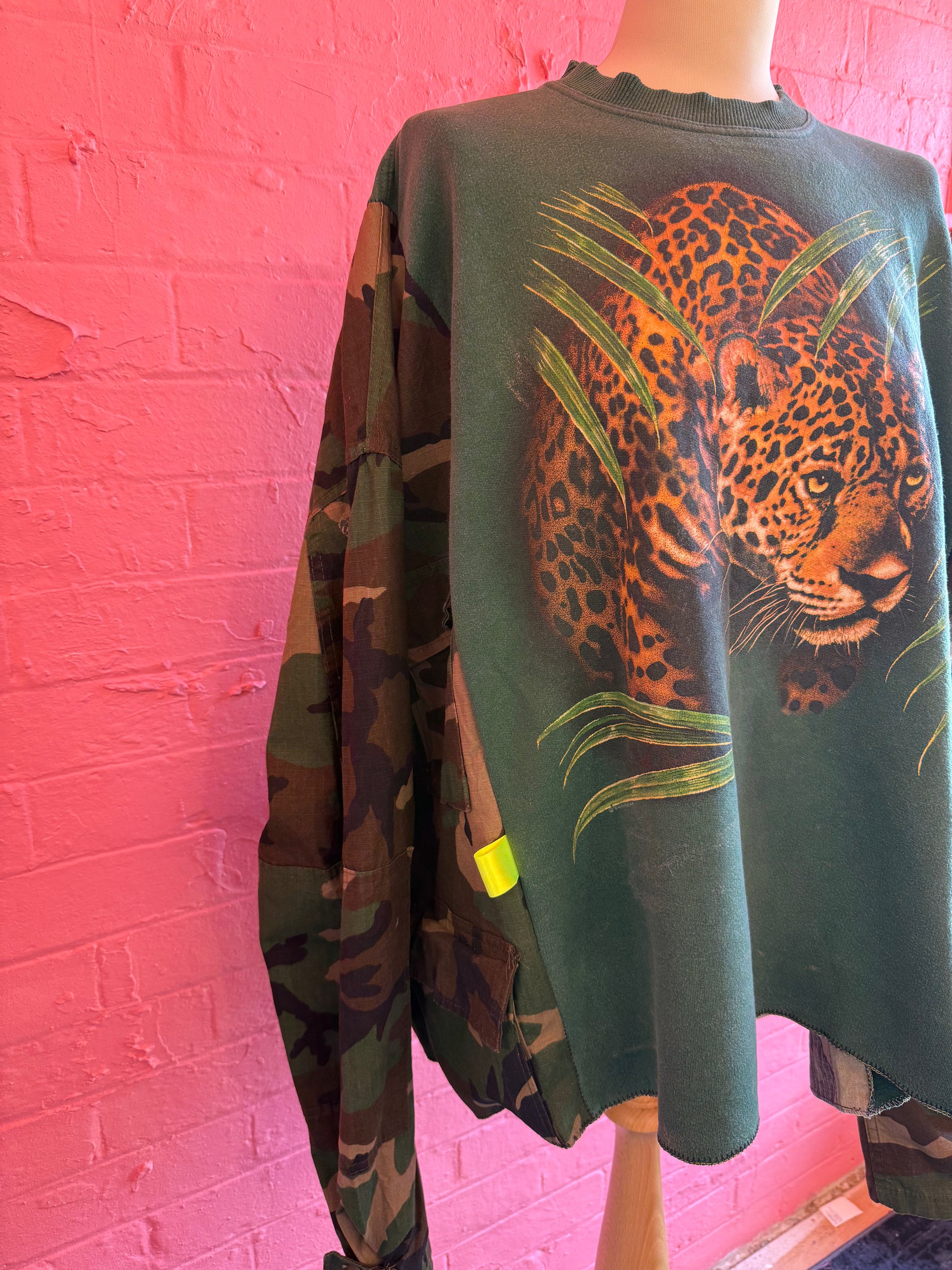 Super oversized, slouchy ‘lazy’ top created with two vintage pieces.