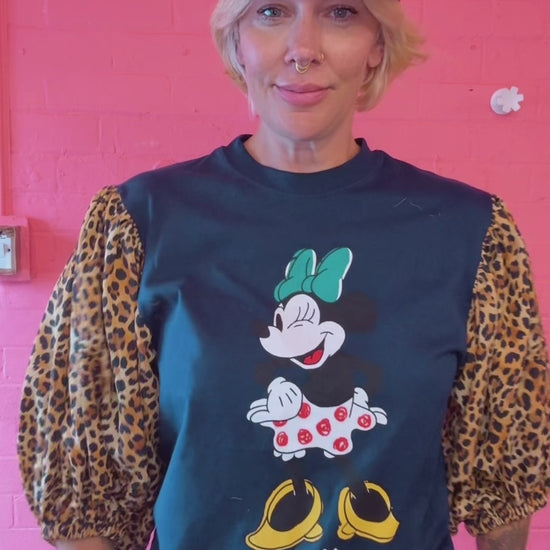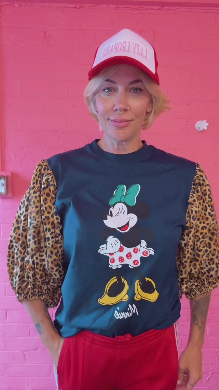 Vintage Minnie Mouse T shirt and leopard puff sleeves