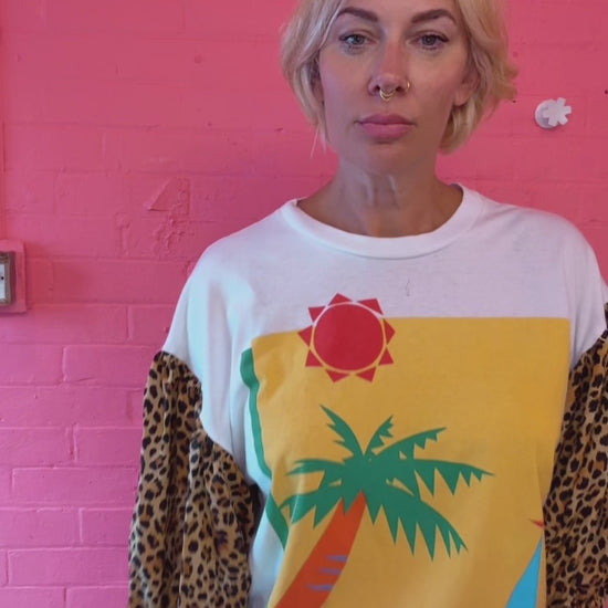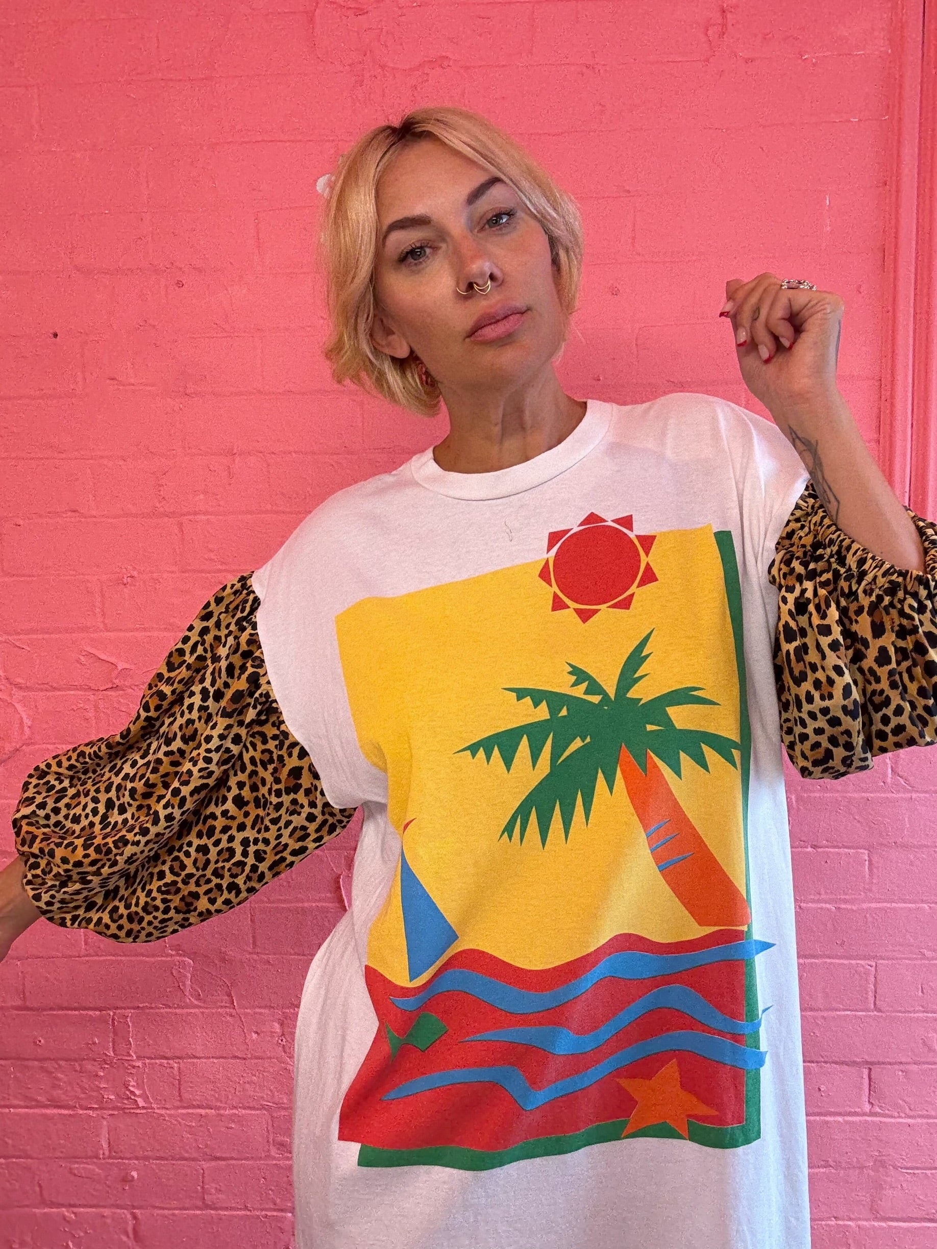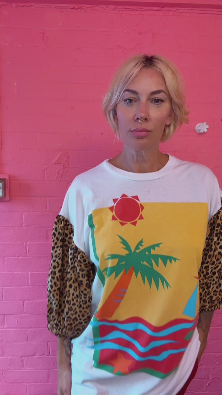 vintage T shirt with leopard puff sleeves