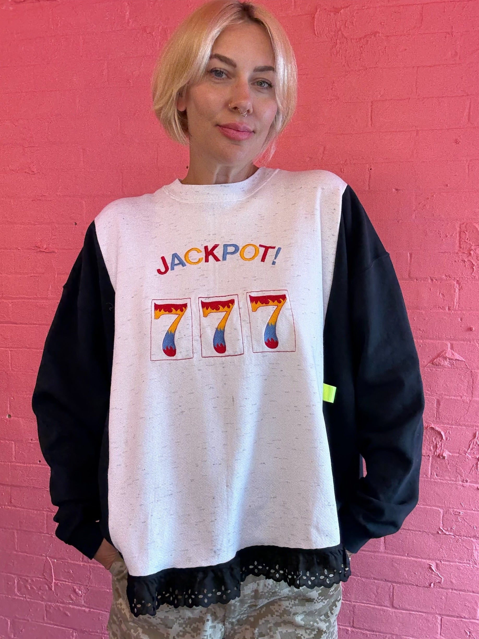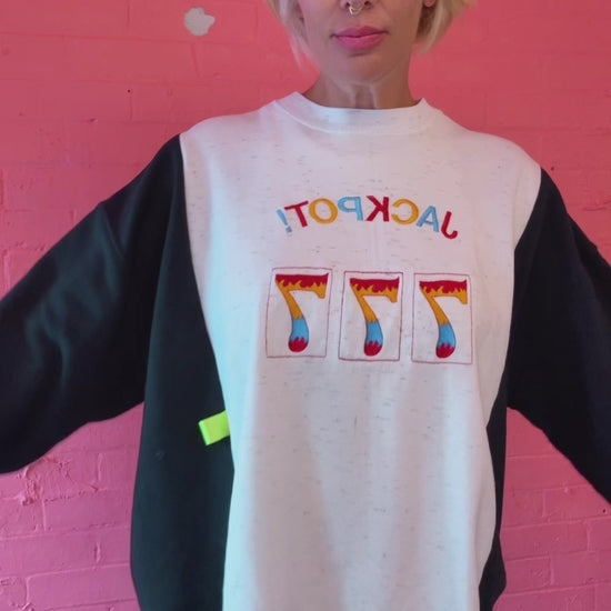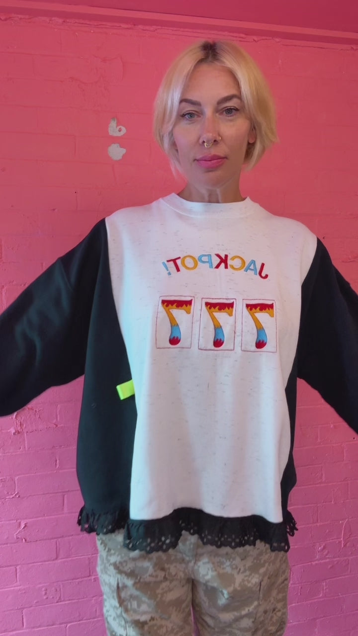 Two vintage sweatshirts combined to create a super cozy and cool sweatshirt.