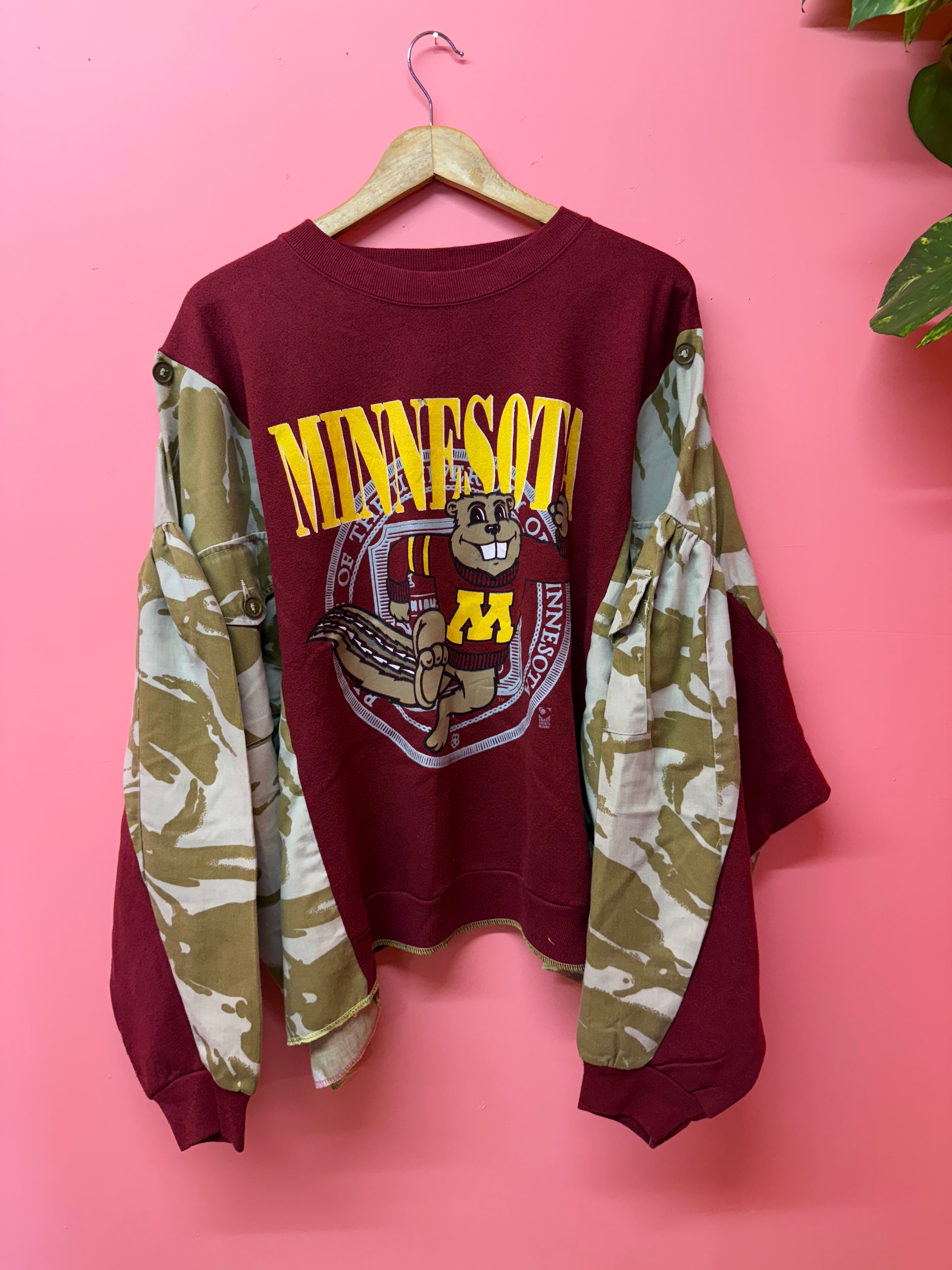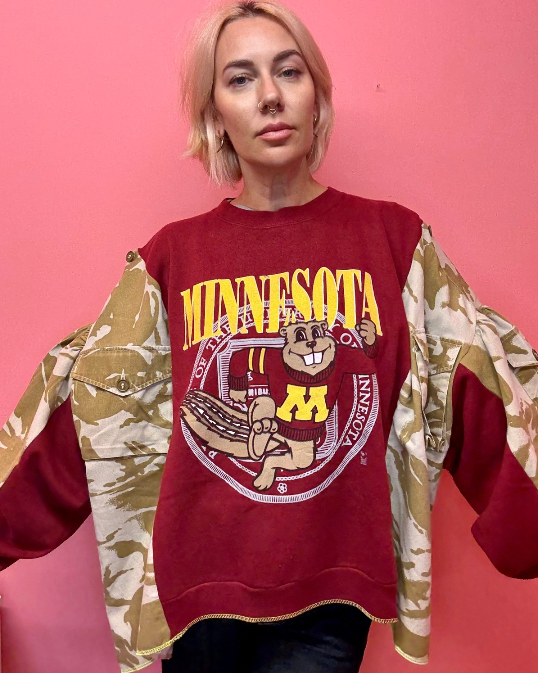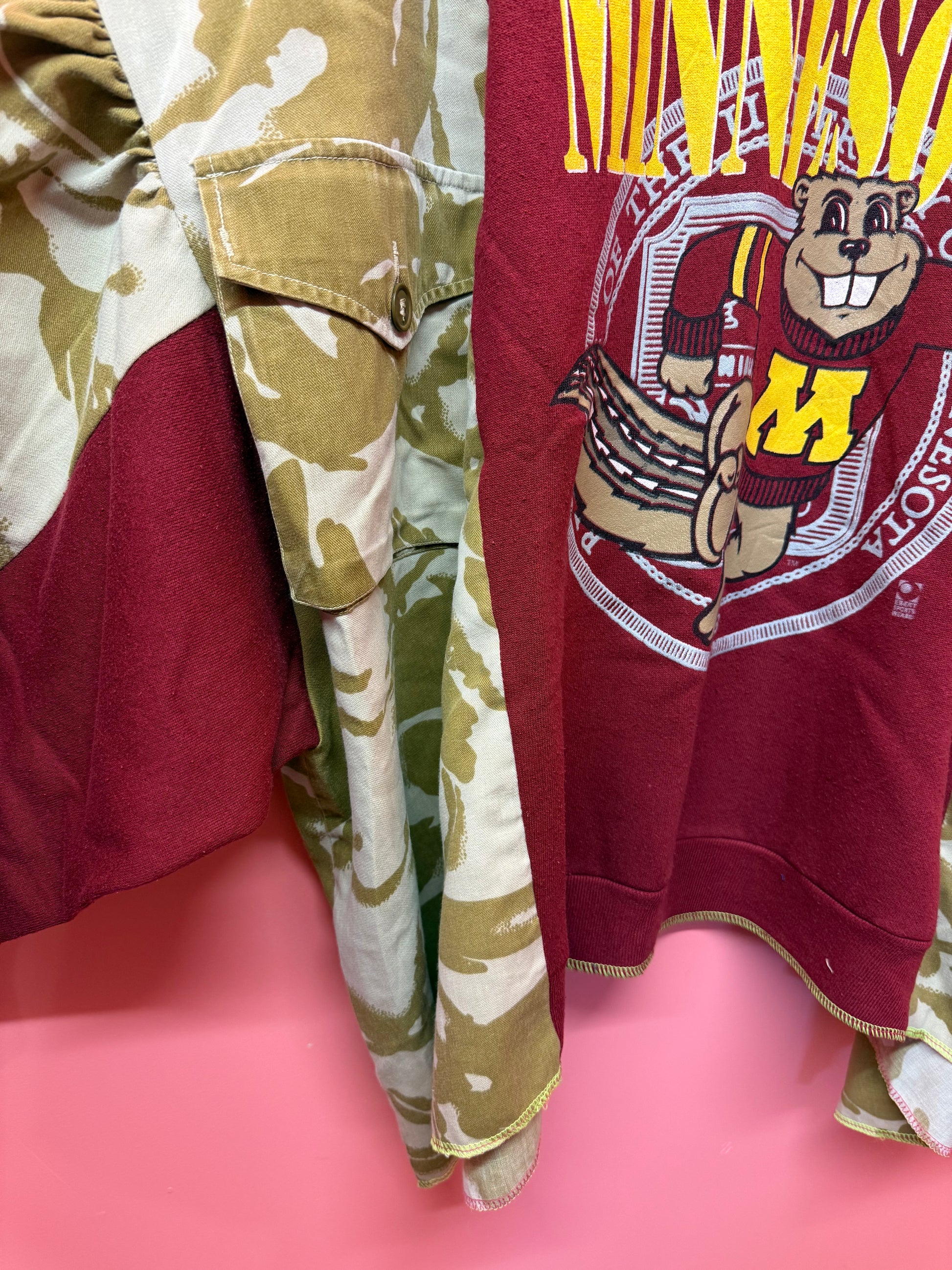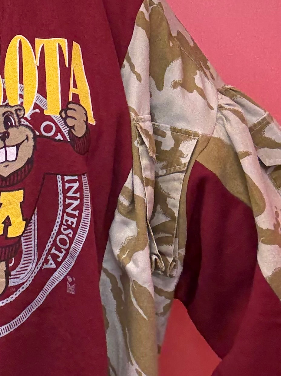 Minnesota gophers vintage sweat versus British DPM desert jacket.